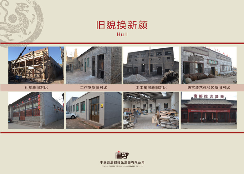 平遥唐都推光漆器是平遥煤化(煤化)公司转型项目,于2011年12月创建公司,注册资金2000万,投资1.23亿元,建筑面积近4万平方米,是一家集“生产销售、展览收藏、研发设计、旅游观光、创业孵化、跨界融合、漆树种植”于一体的综合型公司,公司主要产品有古典现代推光漆器家具、柜、几、床、桌、凳、屏风、漆画、首饰匣等文化礼品和旅游纪念品,具有实用、收藏、文化、艺术价值。产品销往国内外18个国家和地区,屡获全国博览会金银奖,通过了IS09001质量体系认证,取得了自营出口权,被中国工艺美术协会授予“中国推光漆器博物馆”和以唐都为龙头的“中国推光漆艺之都”、“国礼生产指定厂家”、“CCTV央视网商城优选品牌”、国家文化产业示范基地,山西省众创空间。公司现有国家级、省级工艺美术大师及专业设计制作团队186人,技术力量雄厚,秉承质量第一、服务诚信,经营上门测量、免费设计、终身保修,欢迎选购定制。